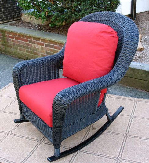Quality Resin Wicker Furniture.....Our Laguna Beach Resin Wicker Rockers have factory welded aluminum frames and quality --HDPE--High Density Polyethylene hand woven over them. No Assembly Required. All you have to do is pop the runners onto the bottom of the legs and put one screw--comes with it--in each leg. They are all deep seated with varying high backs & wide arms. Our cushions are American Made.