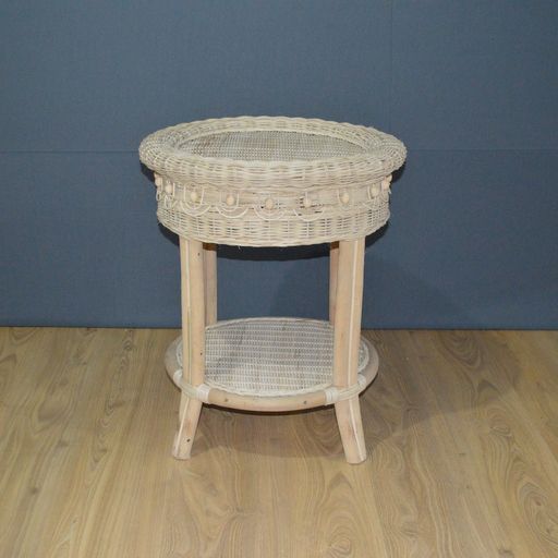 Victorian Rnd Beaded End Table - White Wash