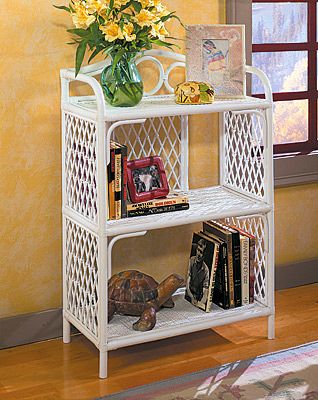 Our Rattan Book Cases have a sturdy "broom handle" size rattan frame. All of the shelves have a slim piece of wood under them with a flat texture of wicker woven over them for beauty. Please notice the corner rattan corner braces under the shelves for even more stability. We finish them with rattan done in a criss cross lattice design on the sides & back. They are well made, yet light & airy.