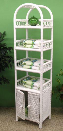 Our Natural Rattan Etagere with lower doors is beautiful. It has a sturdy pole rattan frame with different textures of wicker woven and wrapped over it. We have framed out the backs of the doors and shelves out with wood. This rattan floor shelf is very well made. Bedrooms, bathrooms & hallways are just a few of the places our customers are using it. Linens, bath items, plants, knick knacks, some books or just about anything else you chose to place on it will do well. You will enjoy it for years to come. Everything is made at the factory. There is no assembly required.